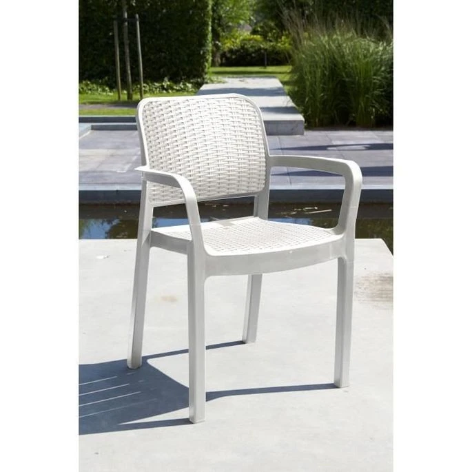 ALLIBERT By KETER – Lots De 6 Fauteuils Monoblocs Bella Empilables En Résine De Synthese – Imitation Rotin Tressé – Coloris Blanc.