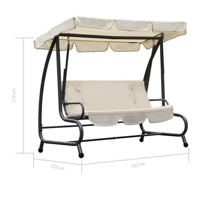 La livraison inclut 1 balancelle, 1 coussin et 1 auvent.