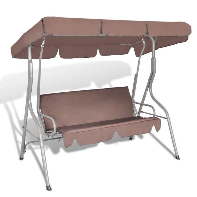 Une balancelle double avec un coussin d’assise, un coussin de dossier et un auvent