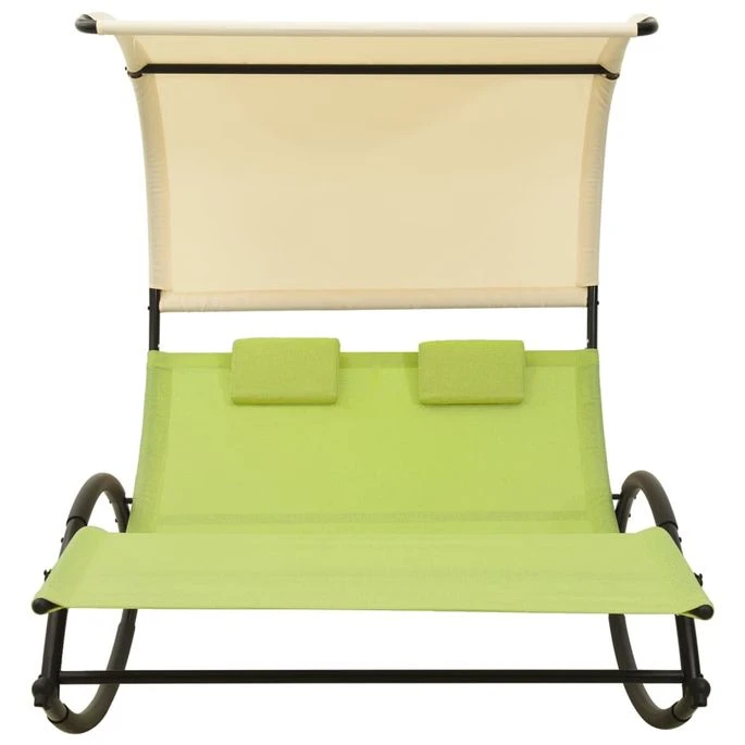 Chaise Longue Double Avec Auvent Textilène Vert Et Crème