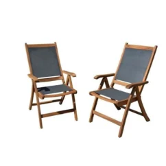 Lot De 2 Chaises De Jardin En Bois D’acacia FSC Et Assise Textilene – 50 X 57 X 90 Cm – Gris