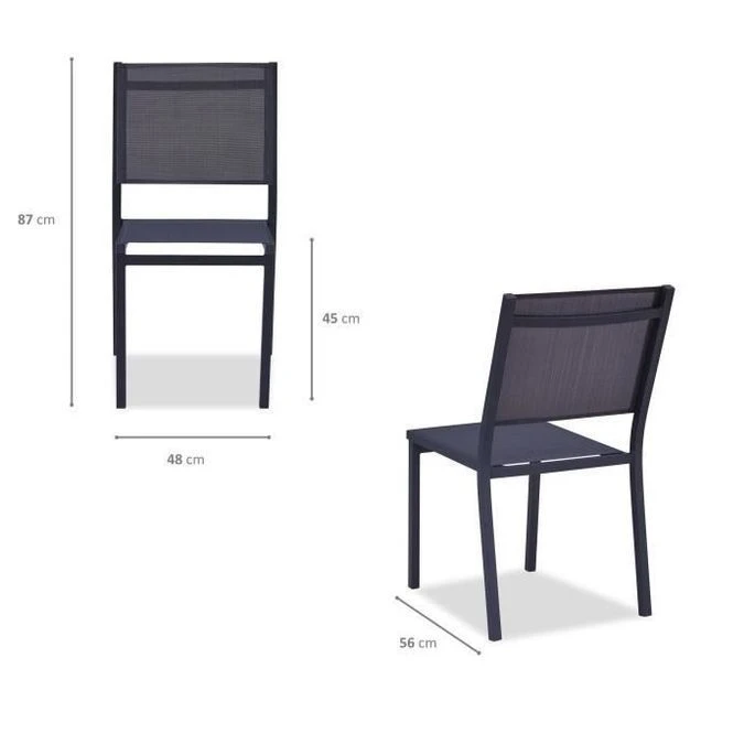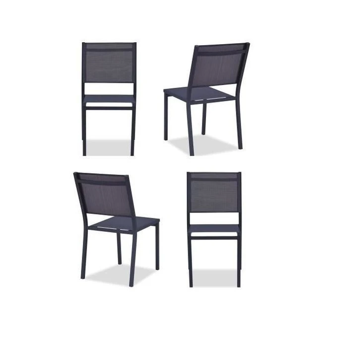 Lot De 4 Chaises De Jardin En Aluminium Assise Textilene – 48 X 56 X 87 Cm – Gris