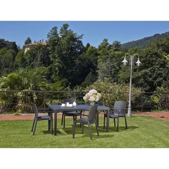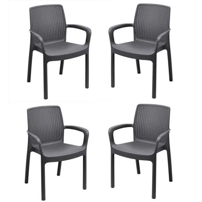 Lot De 4 Fauteuil Empilable REGINA En Résine Tréssée – Gris Anthracite