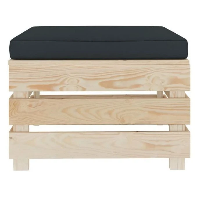 Repose-pied Palette De Jardin Avec Coussin Crème Bois De Pin
