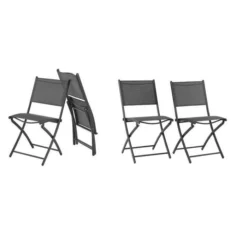 Lot De 4 Chaises De Jardin Pliantes En Aluminium Assise Textilene – 46 X 56 X 85 Cm – Gris